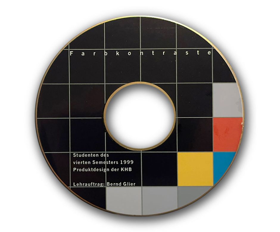Im Fach Gestalterische Grundlagen entstanden an der KHB 1999 diese angewandten Farbübungen, in denen die Studentinnen und Studenten des Studienganges Produktdesign die sieben analogen Farbkontraste nach Johannes Itten, in einer von ihnen gewählten Grundform am Computer darstellen sollten.